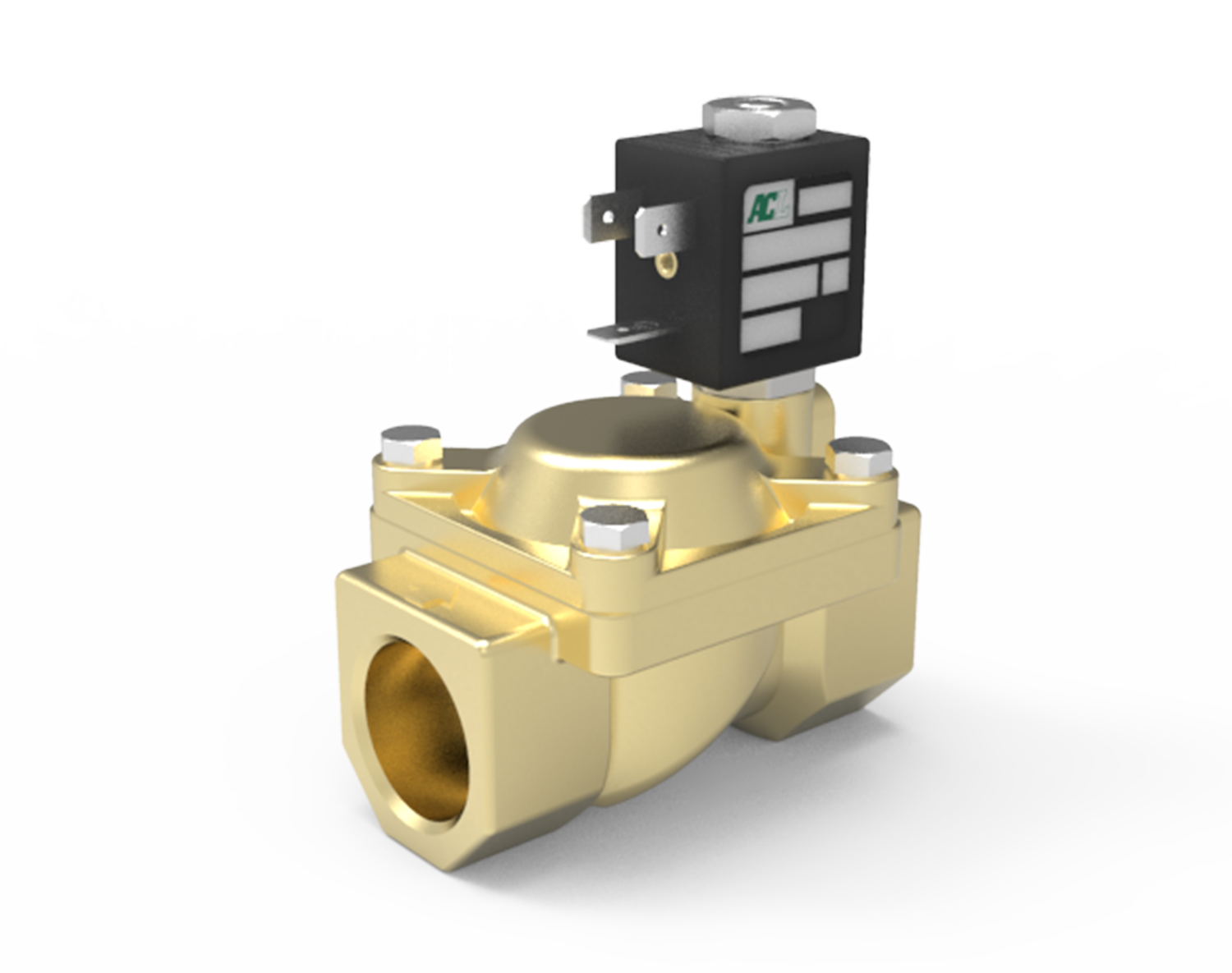 Solenoid valve 2 way with servo-assisted diaphragm bi-stable. The bi-stable function is achieved by the use of a polarized permanent magnet energizing the coil with a DC current for at least 15ms in the reverse direction of the previous impulse.